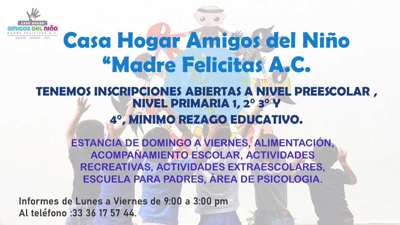 Casa Hogar Amigos del Niño Madre Felicitas A.C. es un internado para menores entre 3 y 10 años.
